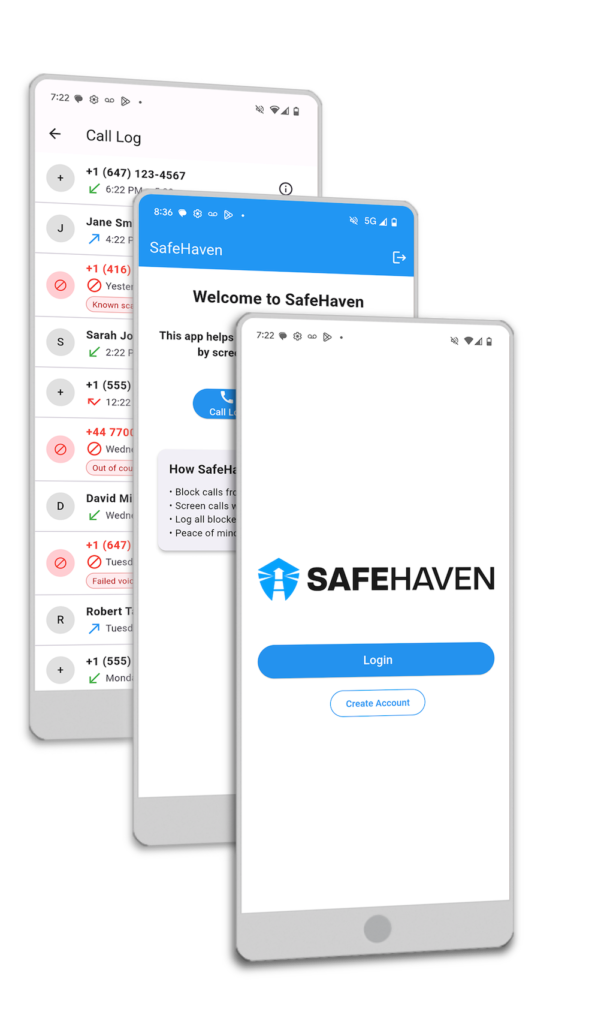Scammers frequently target seniors, which can lead to confusion, stress, and financial loss. SafeHaven is here to protect you. With our app, fraudulent calls and texts are filtered, and unknown callers are interviewed to ensure they have good intentions.